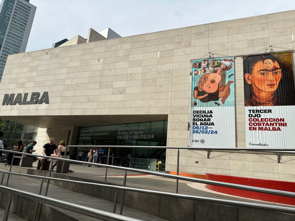Im Museo de Arte Latinoamericano de Buenos Aires MALBA in Buenos Aires Ausstellung mit u.a. Frida Kahlo und anderen Künstler*innen. Nur diese zwei Bilder der mexikanischen Malerin mit einer beeindruckenden Biografie waren zu sehen. Interessant und bewegend das zentrale Thema der Ausstellung: die Diktatur in Argentinien und in Chile. mit u.a. der Künstlerin Cecilia Vicuña.