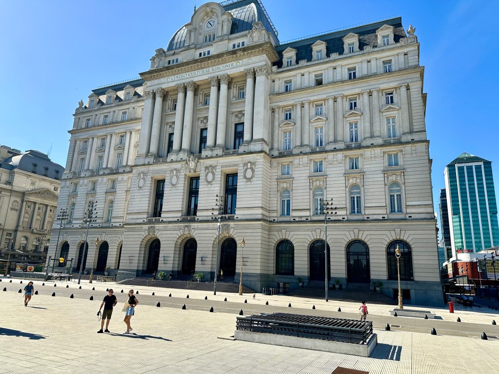 Bisher sind wir überall problemlos reingekommen, ohne lange Warterei. Heute war es mal anders: Der Besuch des von vielen empfohlene Palacio Barolo – in privatem Besitz – ist erst ab Mitte kommende Woche möglich. 🤷♀️🤷♂️ Zu diesem Zeitpunkt sind wir in Patagonia 😊. Das Gleiche beim viel gepriesenen Teatro Colõn. Auch hier keine Chance für ein Ticket. Zudem ist morgen Abend die letzte Vorstellung für 2024, dann erst wieder im März 2024. Dritter vergebener Versuch: El Centro Cultural Kirchner. dieses öffnet erst wieder am 16. Januar.
