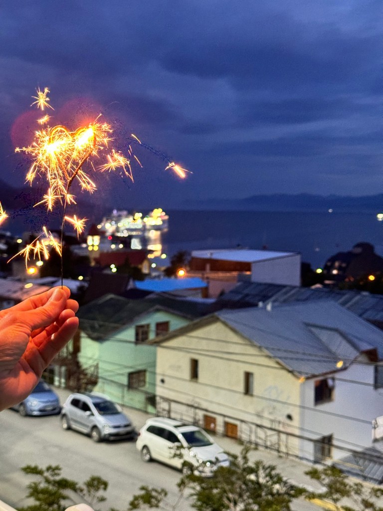 … das war Stefans Geburtstag: Wecker um 4.30 h, Geburtstags-Gutenmorgen-Kuss, Taxi zum Flughafen, Abflug 9.15 h, 3 3/4. std. Flug nach Ushuaia, Entdeckungsspaziergang durch Ushuaia, Geburtstagsessen mit Kerzenlicht, Bescherung und dazwischen viel Whatsapps, SMS, E-Mails, Telefonanrufe …