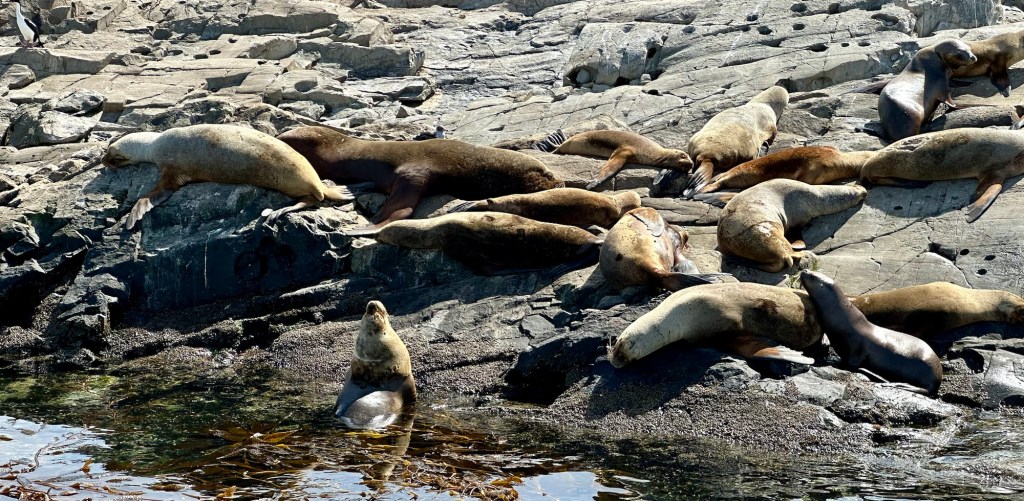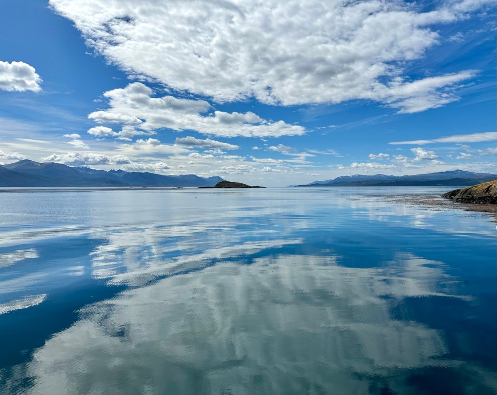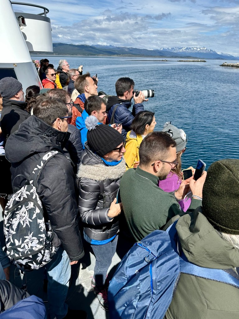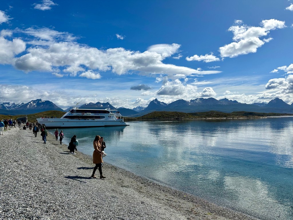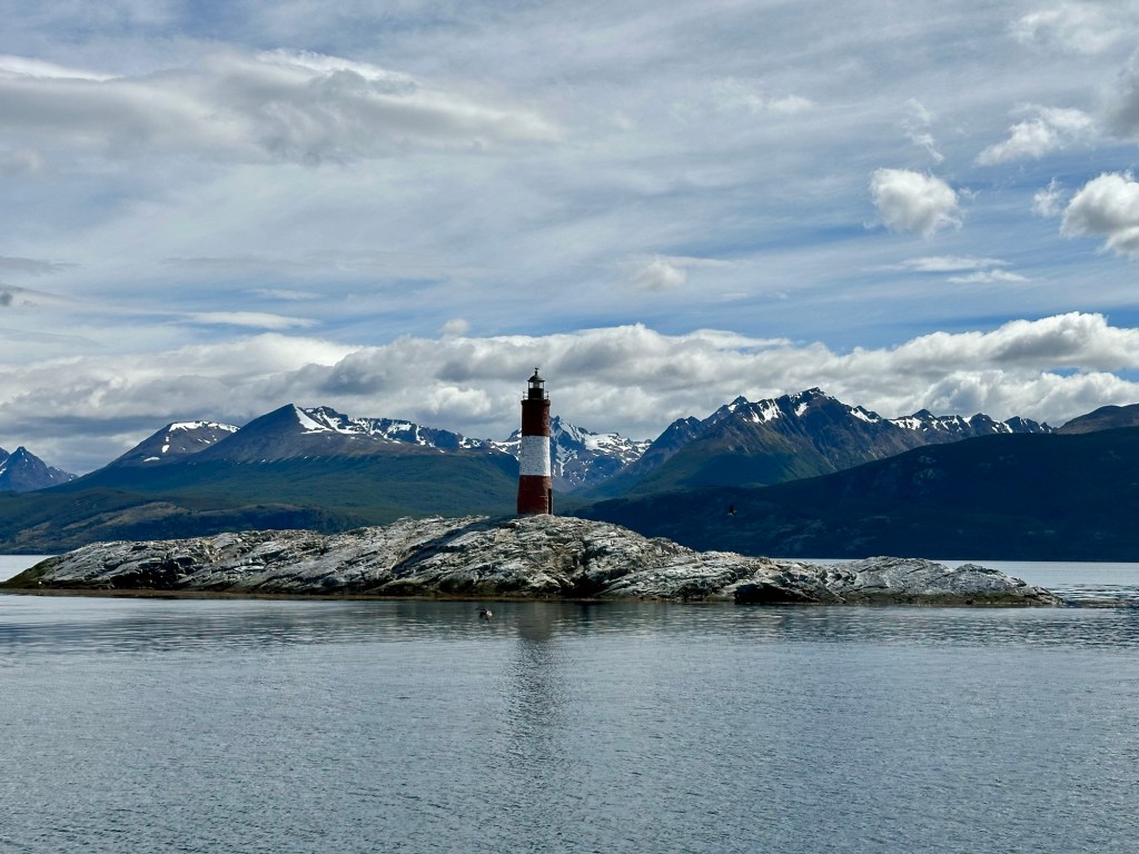 Nach einigem Hinundher 😏 klappte es dann doch, der Bootsausflug auf einem Katamaran im berühmten Beagle Kanal in Ushuaia. Wir hatten traumhaft schönes Wetter und die Sicht war prächtig, was nicht selbstverständlich ist. Auf der zweistündigen Fahrt sahen wir zu den Gletschern, unter anderem dem „Le Martial“, sowie auf die Stadt Ushuaia. Die Weite, das Wasser, das Licht und die Wolken sind ganz einfach beeindruckend. Wir bewunderten die vielen Seevögel (wir sind keine Fachleute, aber es hatte auf jeden Fall Kolonien von Kormoranen) und die putzigen Seelöwen. Selbstverständlich durfte der malerische Leuchtturm „Les Éclaireurs“ nicht fehlen. Er ist das Wahrzeichen der Region und soll das Ende des Kontinents Südamerika bedeuten.