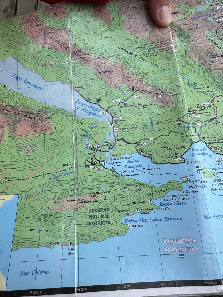 Wir sahen hinüber nach Chile, beispielsweise zum Monte Cormoranes, dessen Spitze chilenisch ist, und der Wald unterhalb Argentinien gehört.