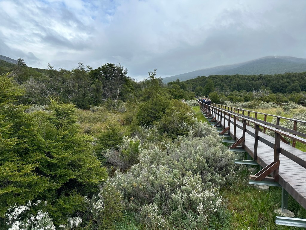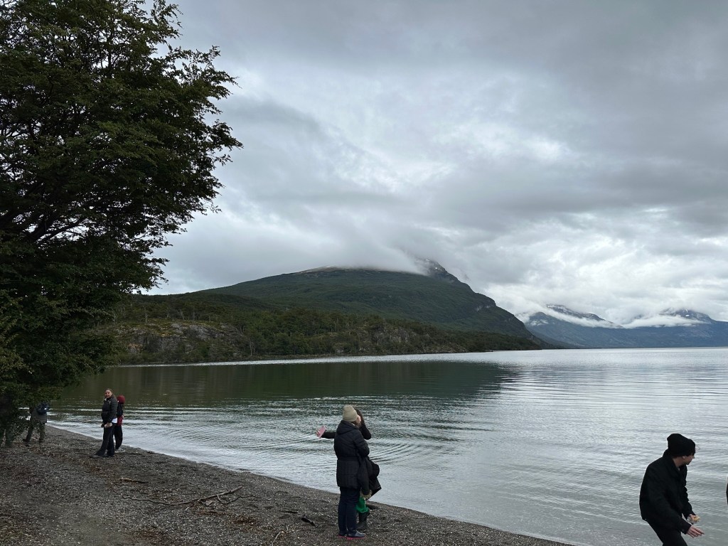 Ein weiteres Highlight heute: Unser Ausflug in den den parco national tierra del fuego (Feuerland). Wir hatten Wetterglück. Zwar schien die Sonne nicht, doch das Spiel der Wolken, der Wind, die Berge mit den Gletschern, die Farben, die vielen Bäume und Sträucher, die bunte Blumenwelt und das eiskalte Wasser verliehen der Umgebung einen mystischen Touch. Die Wanderung durch die Wälder und am Ufer der Gewässer wird uns unvergesslich in Erinnerung bleiben. Unsere Reiseführerin Gabriela erzählte uns beiden mit viel Leidenschaft von der Geschichte der Gegend sowie der Flora und Fauna. Wir erfuhren wie die englischen Seefahrer versuchten, die Urbevölkerung (Yaghan) zu erobern, wie Alkohol und Tabak deren Leben veränderte und dass es nur sehr wenig Historisches über diese Vorfahren gibt. Die Chilenen und Argentinier im Feuerland forschen deshalb gemeinsam nach ihrem Ursprung.