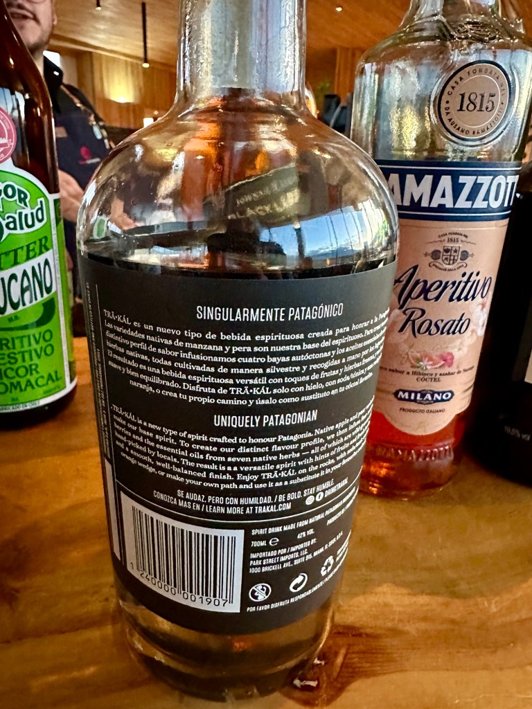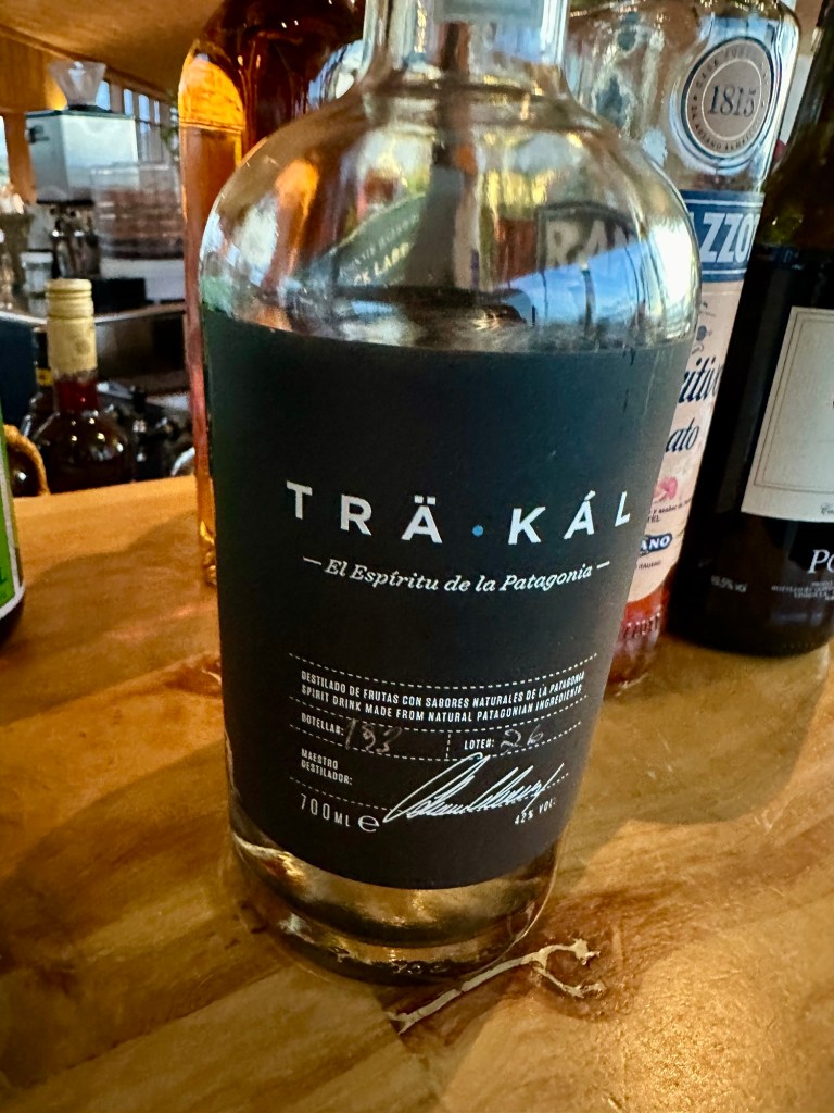 Ein weiteres chilenisches alkoholisches Getränk, das wir genossen haben (neben dem köstlichen Wein), Unser Schlummertrunk Trä-Kál war ein neuartiges Destillat, das zu Ehren Patagoniens kreiert worden sein soll. Wilde Äpfel und Birnen sind die Quelle des Alkohols in der ersten Destillation. In der zweiten Destillation werden Maqui, Murta und Holunderbeeren hinzugefügt. In der dritten Destillation wird die einzigartige Mischung aus den ätherischen Ölen von Tepa, Lorbeer, Pfefferminze, Paramela und Canelo hinzugefügt.