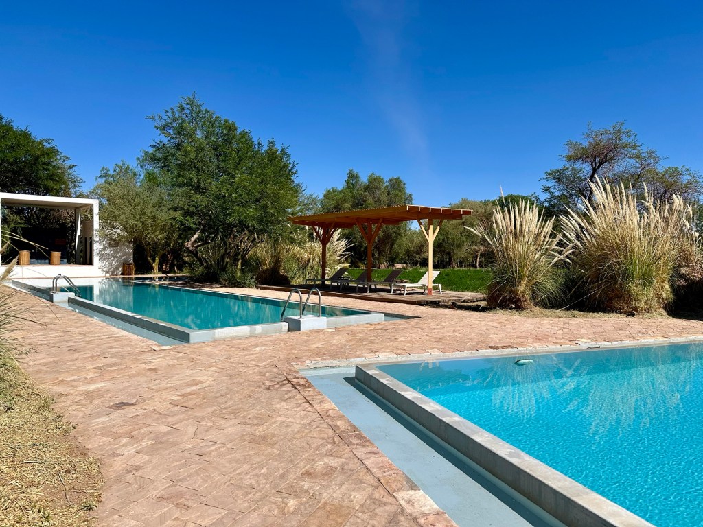 Wir befinden uns zurzeit im Flughafen-Hotel von Santiago de Chile. Am Mittag fliegen wir über Sao Paolo zurück in die Schweiz. Den letzten Tag in der Atacama-Wüste schlossen wir mit herrlich erholsamen Stunden am Hotel-Pool und einem köstlich-leichten Znacht mit Pisco-Apéro und chilenischem Wein ab.