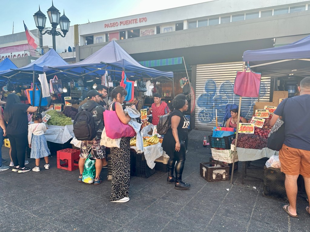 Was für ein buntes Treiben. Es hat aber auch die Gegenseite. Vielerorts entdecken wir Menschen, die nach Essbarem suchen, die lust- und energielos herumsitzen. Die Armut scheint uns hier noch offensichtlicher, grösser zu sein als in Buenos Aires. In den angrenzenden Strassen der Plaza werden auf Tüchern ausgebreitet Waren angeboten, einzelne T-Shirts, „Marken“-Taschen, Unterwäsche und anderes mehr. Eine Frau zeigt auf Claudias Handy und fordert sie auf, dieses zu verstecken …