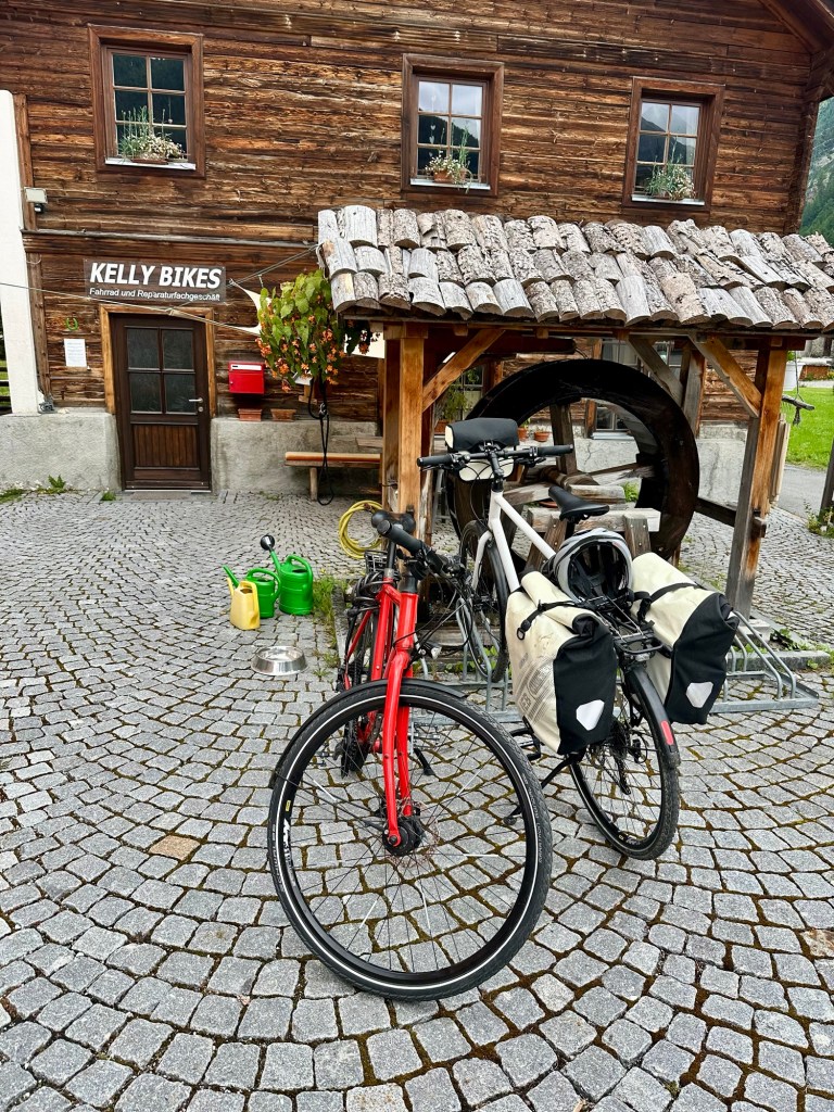 Den Passo Stelvio mit dem Velo – ein Plan, der seit längerem in uns schlummerte. Am 22. Juli stimmten die Wetterprognosen und wir konnten los, mit dem Zug nach Zernez. Das heisst, nicht richtig. Denn am Vorabend ging das Ventil am Hinterrad von Claudias Velo kaputt, so dass sie ihr Fahrrad vom Wohnort zur Bahnstation hinaufschieben musste …