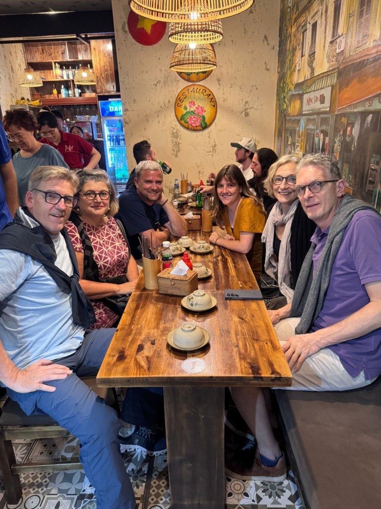 Wir sind gestern nach einem langen, aber angenehmen Flug in Hanoi gelandet. ✈️ Der Temperaturunterschied zur Schweiz ist gross (über 30 Grad) und die Luftfeuchtigkeit hoch (über 70 %) 😅. Unsere Fahrt mit dem Taxi war unterhaltsam und wir erfuhren bereits einiges über Vietnam. Der Chauffeur sprach zwar kein Englisch, aber Google-Übersetzer sei Dank klappte die Unterhaltung praktisch einwandfrei.
