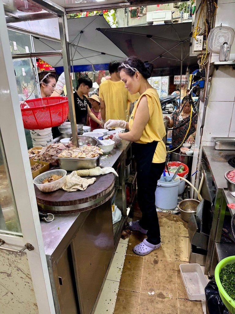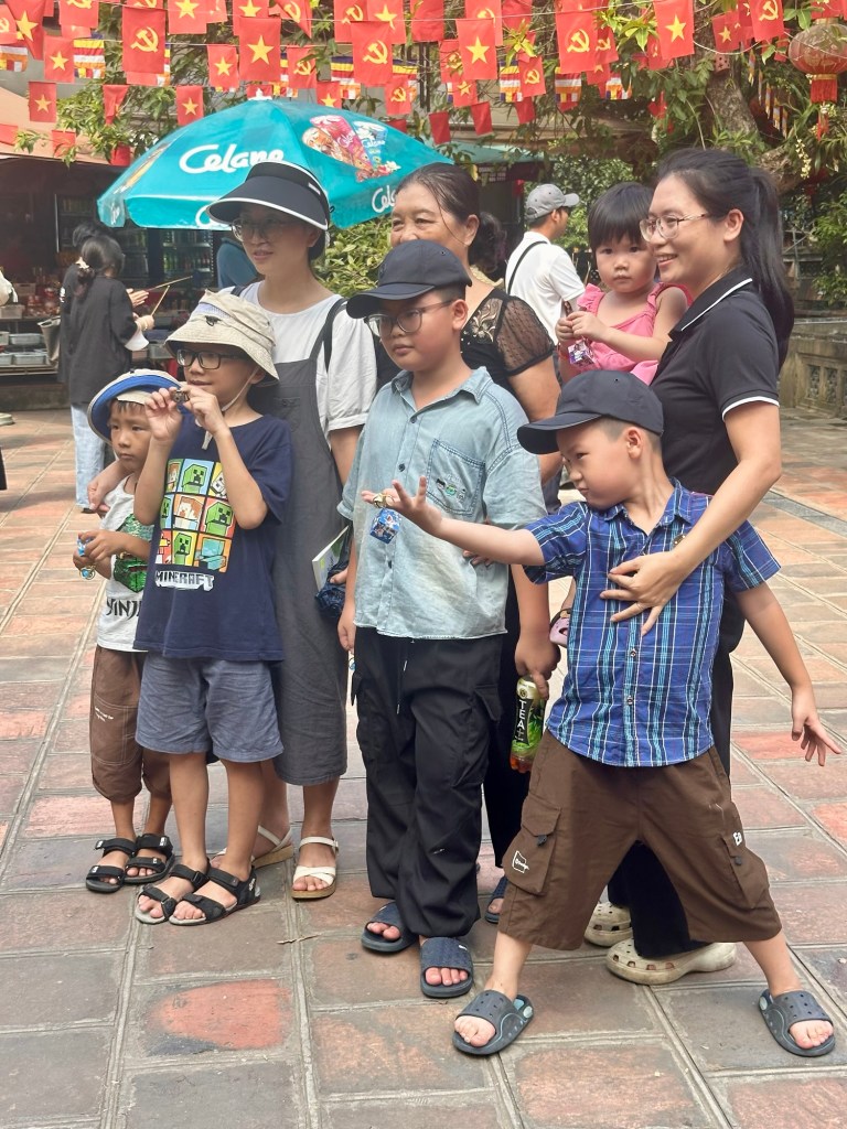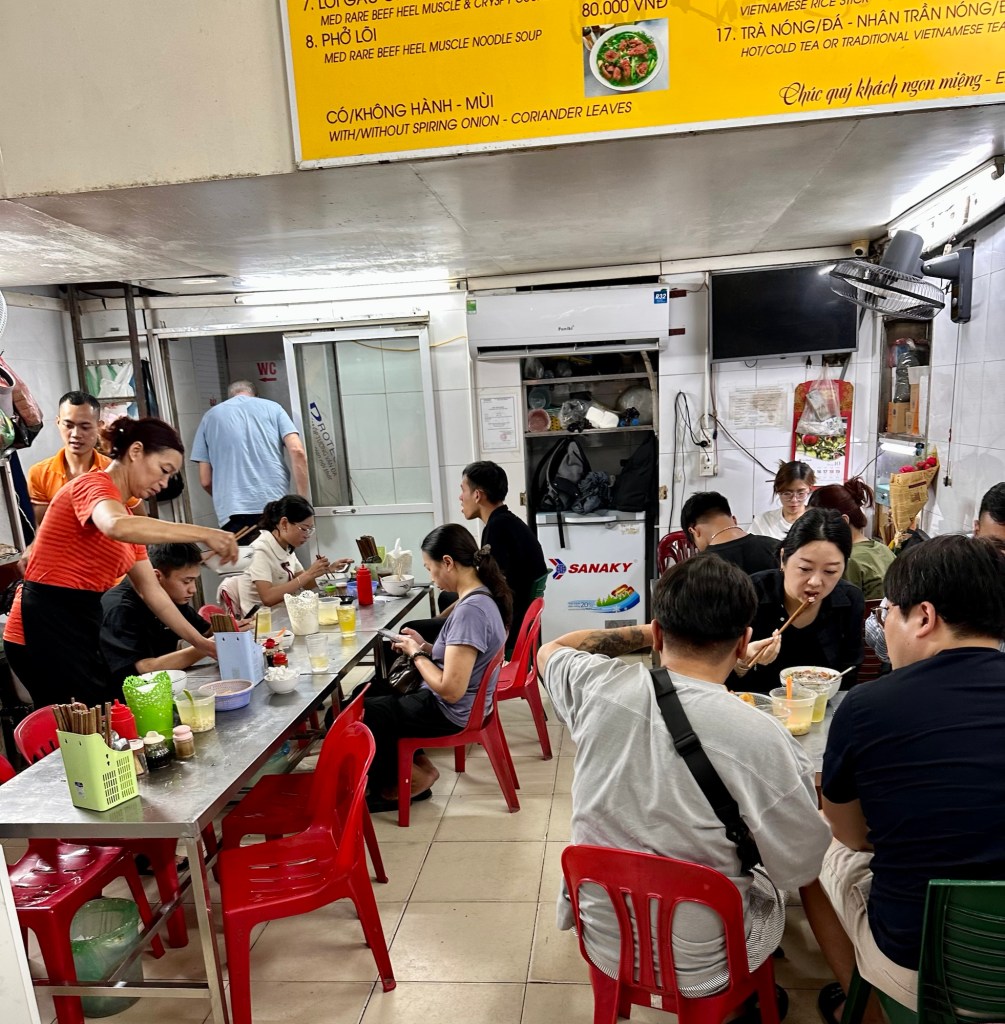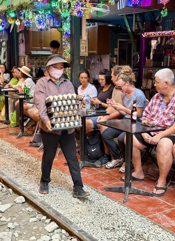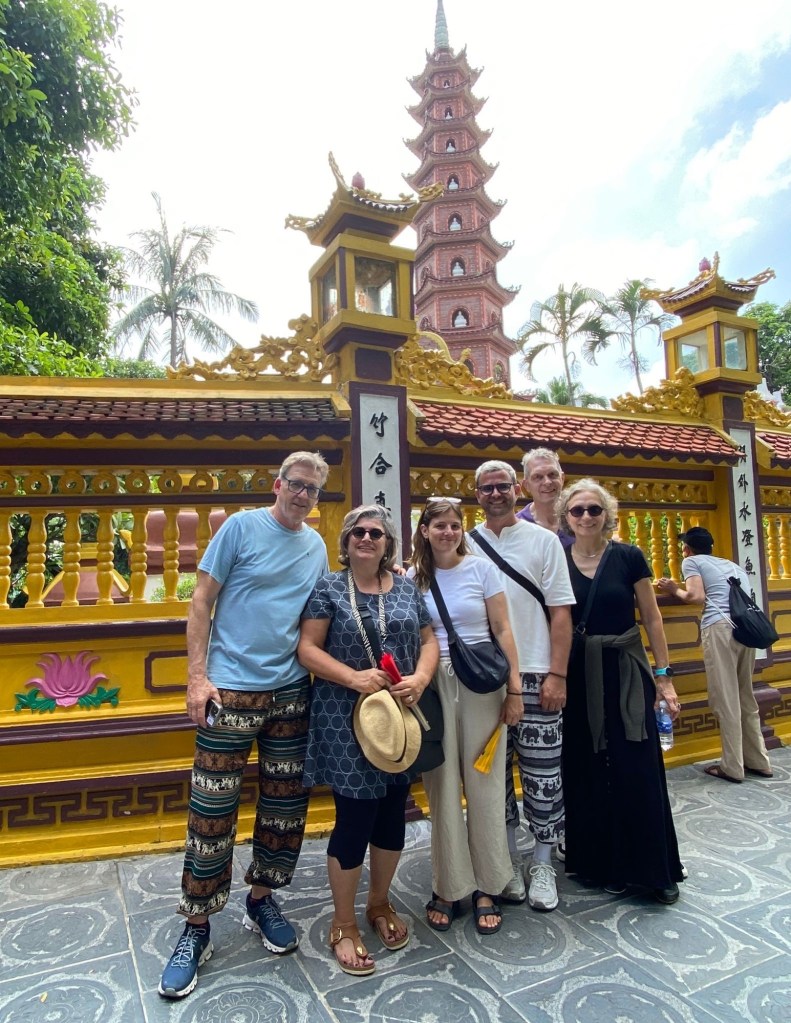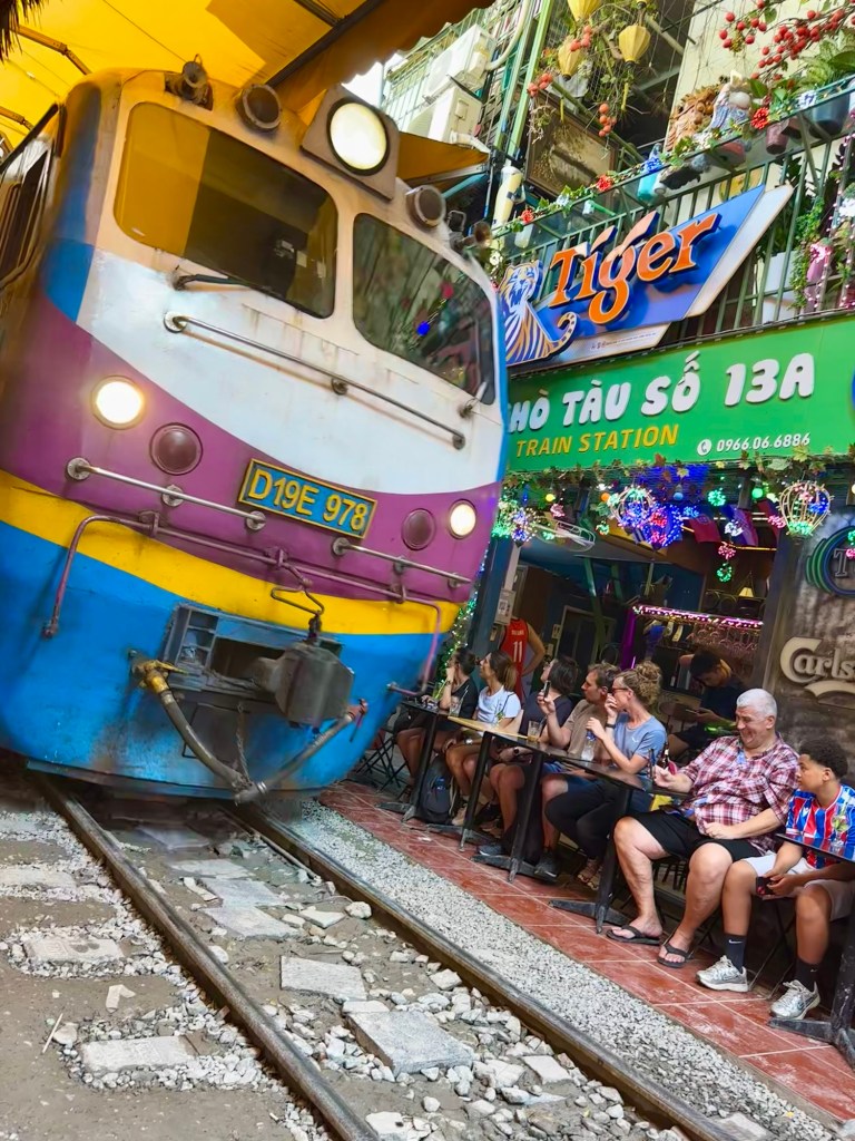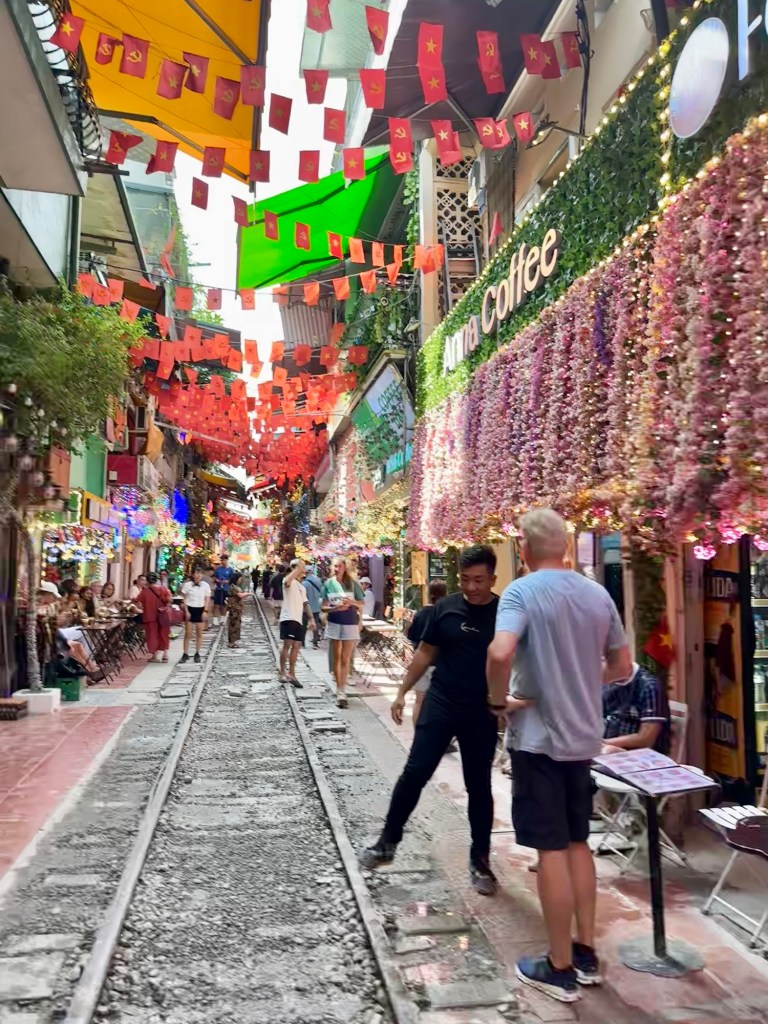 Wir haben während dieser ganztägigen Führung viel erfahren, gesehen, genossen, entdeckt … Das Mausoleum mit Ho Chi Minh, die Einsäulenpagode, das Wasserpuppentheater, den Ngoc Son Tempel mit der roten Brücke und dem Haan-Kiem-See oder das Essen in einem Gault Millau Restaurant mit köstlichen vietnamesischen, einfachen Speisen (siehe Foto). Das Highlight war die Hanoi train street (siehe Video) 🤩.
