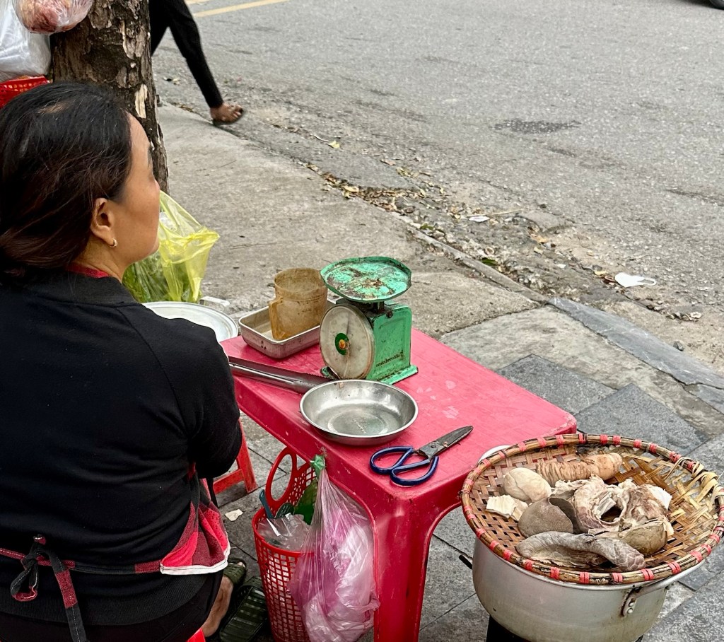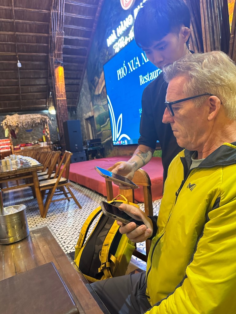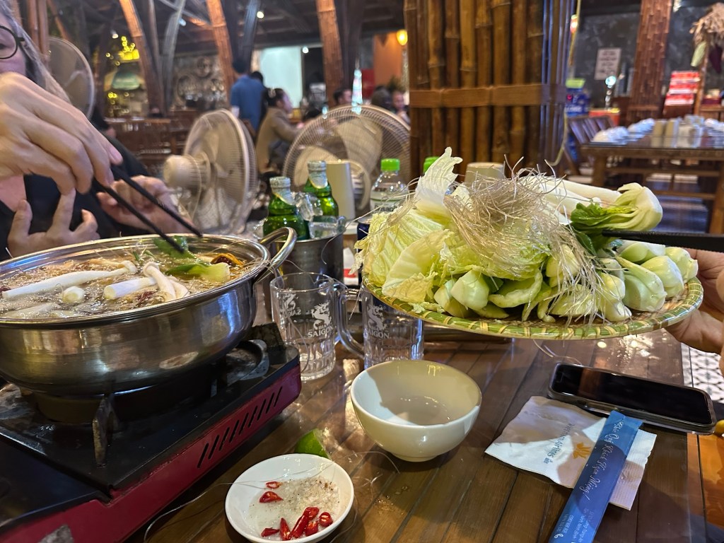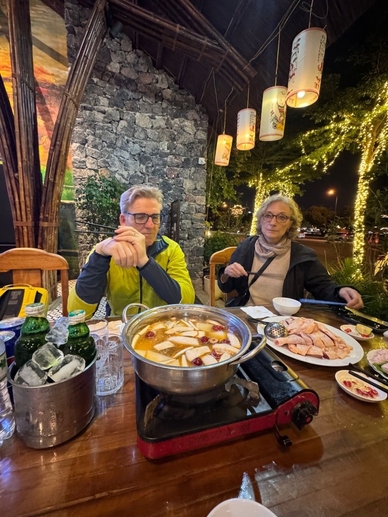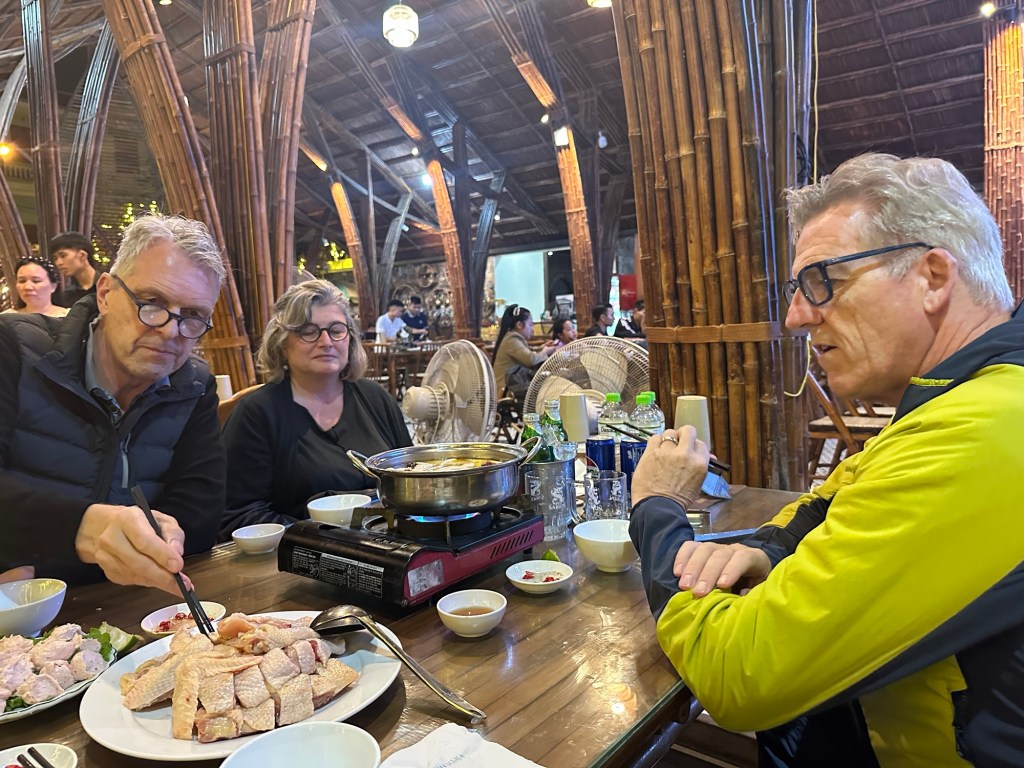 Zum Nachtessen entschieden wir uns spontan für ein grösseres Restaurant, wo es nur Vietnamesen hatte. Wir entdeckten keinen einzigen Touristen aus dem Westen. Der Nachteil: Niemand sprach Englisch. 😅 Dank Google-Translater und einem hilfsbereiten jungen Kellner funktionierte das Bestellen.