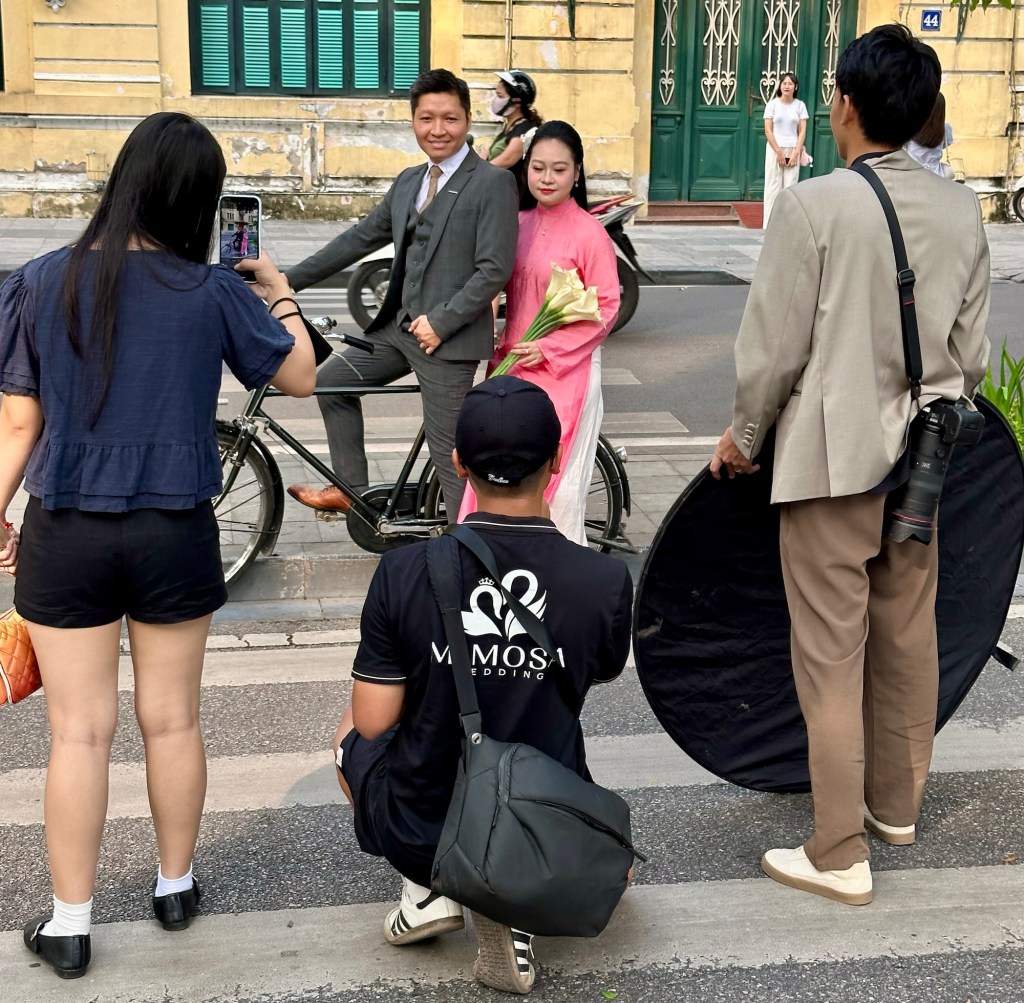-An Hotspots können wir jeweils zahlreiche, vorwiegend junge Frauen beobachten, die szenenreif in Pose setzen und sich fotografieren lassen. Alle sind herausgeputzt, oft mit langen, traditionellen Kleidern und einem Blumenstrauss in den Armen. Gemäss unserem Guide Juan sei dies mit Social Media aufgekommen. Häufig würden die Frauen die Kleider mieten und speziell einen Fotografen engagieren.