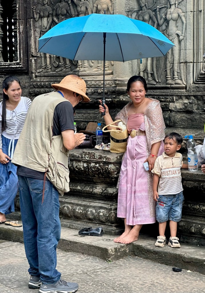 In Kambodscha wie in Vietnam: Wir sind vor allem in bequemen Kleidern unterwegs. Anders die einheimische Bevölkerung: Viele reisen in den schönsten Kleidern zu den Sehenswürdigkeiten, und zwar gross und klein.