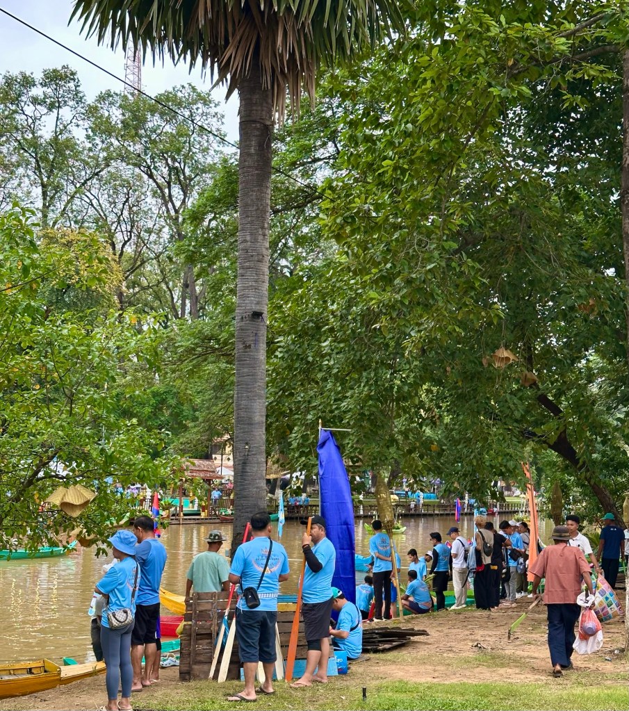 Claudias gestriges Morgenjogging führte an den Fluss und ins Zentrum von Siem Reap. Das Wasserfest war in vollem Gang und die Boote standen kurz vor dem Start. Es war deshalb eine laute, leicht hektische Stimmung.