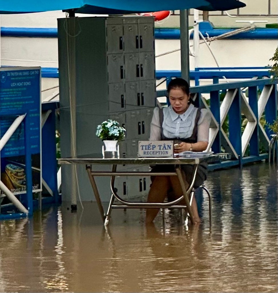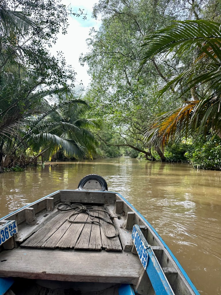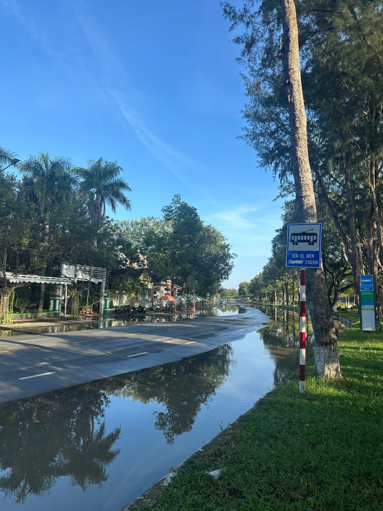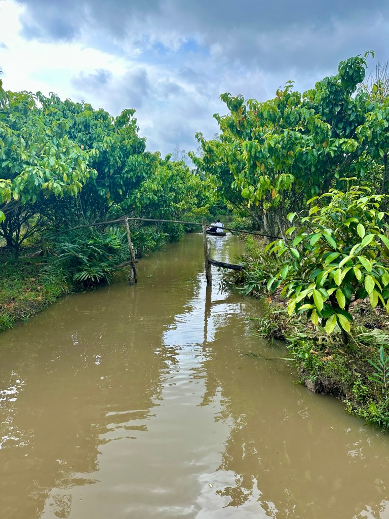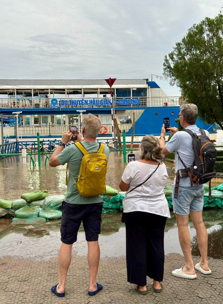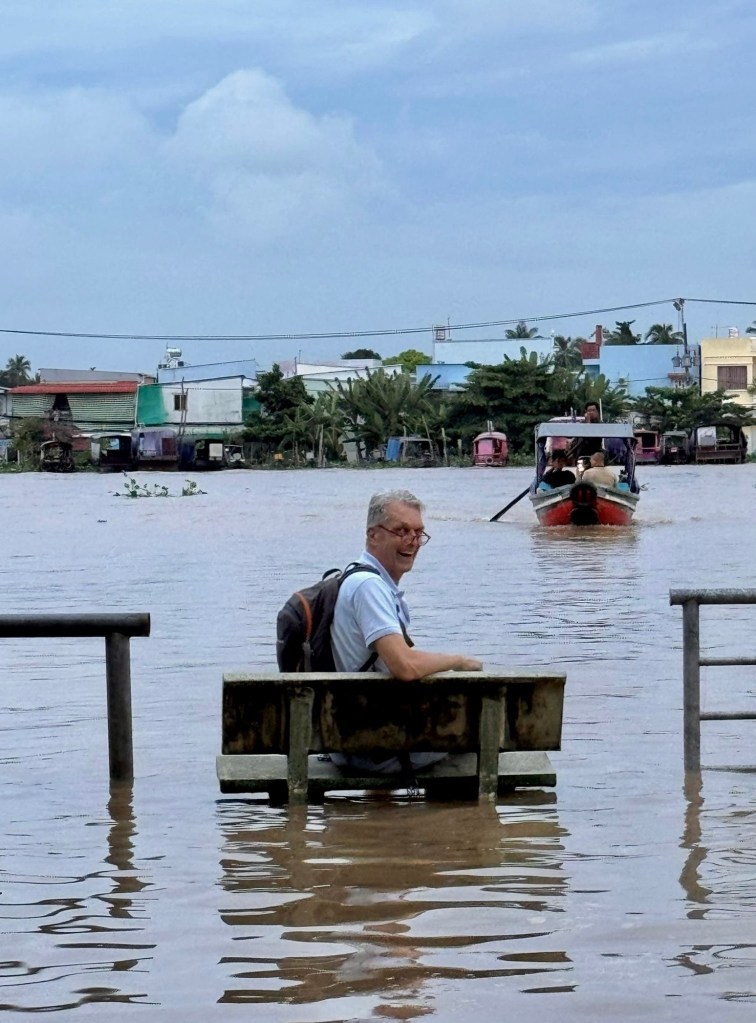 Unsere erste Erkundungstour landete buchstäblich im Wasser. Denn die Flüsse im Mekongdelta treten um diese Zeit über die Ufer und überschwemmen Teile der Stadt, u.a. wegen der grossen Regenfälle. Auch hier haben sich unsere Gummischlarpen bewährt.