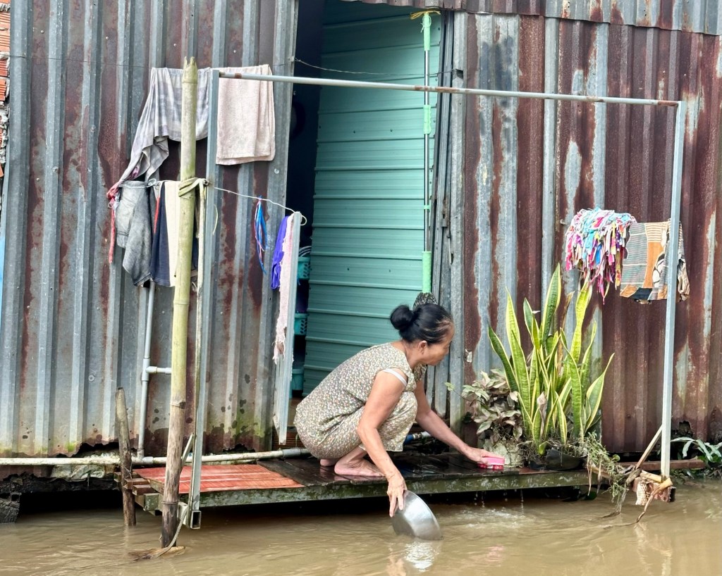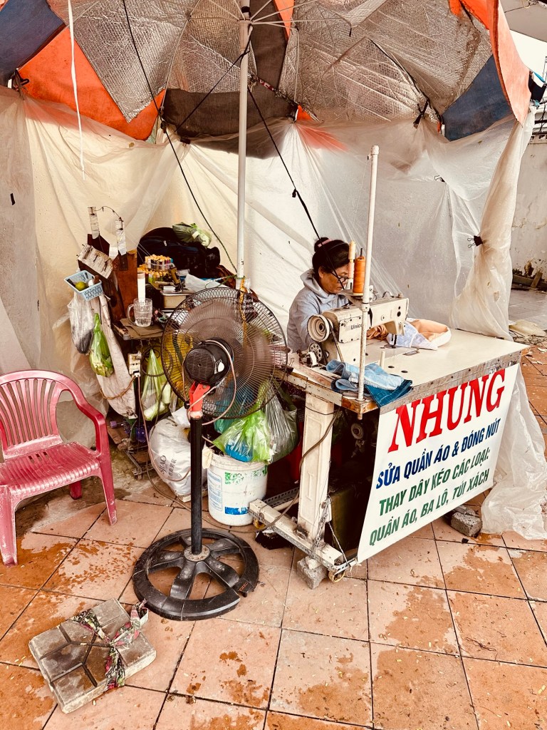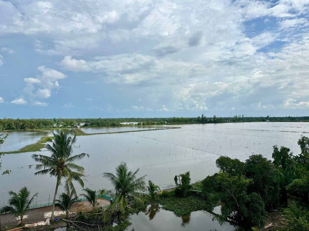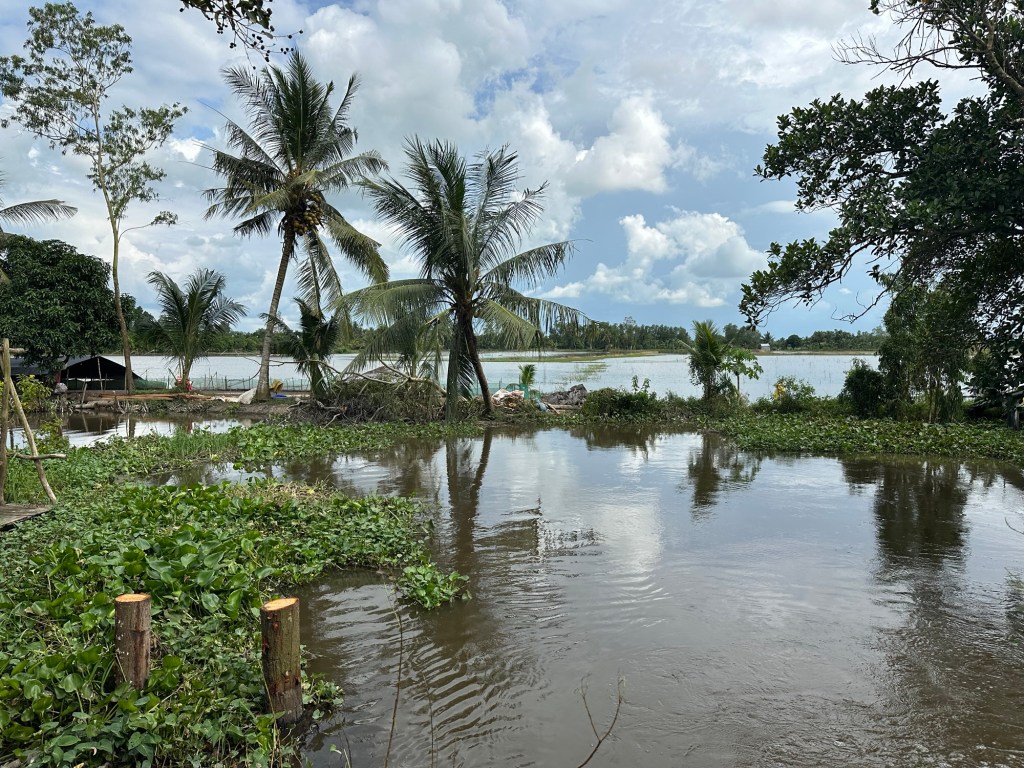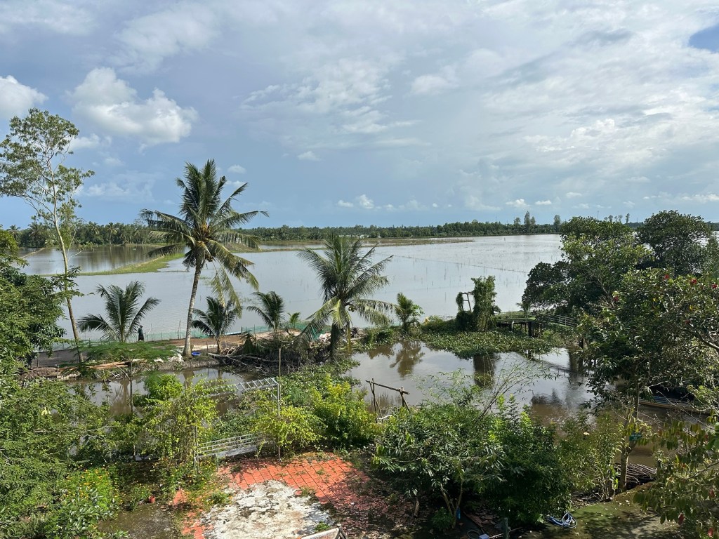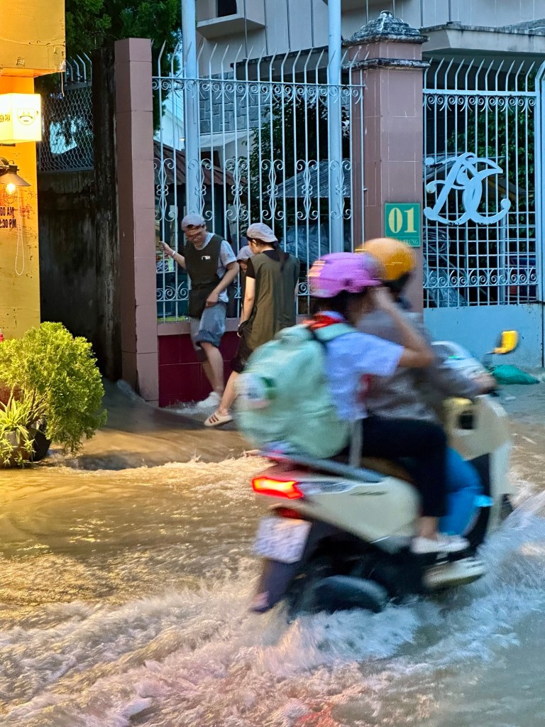 Unsere erste Erkundungstour landete buchstäblich im Wasser. Denn die Flüsse im Mekongdelta treten um diese Zeit über die Ufer und überschwemmen Teile der Stadt, u.a. wegen der grossen Regenfälle. Auch hier haben sich unsere Gummischlarpen bewährt.