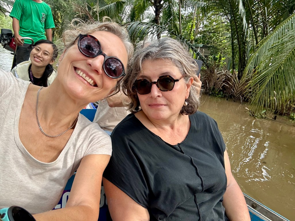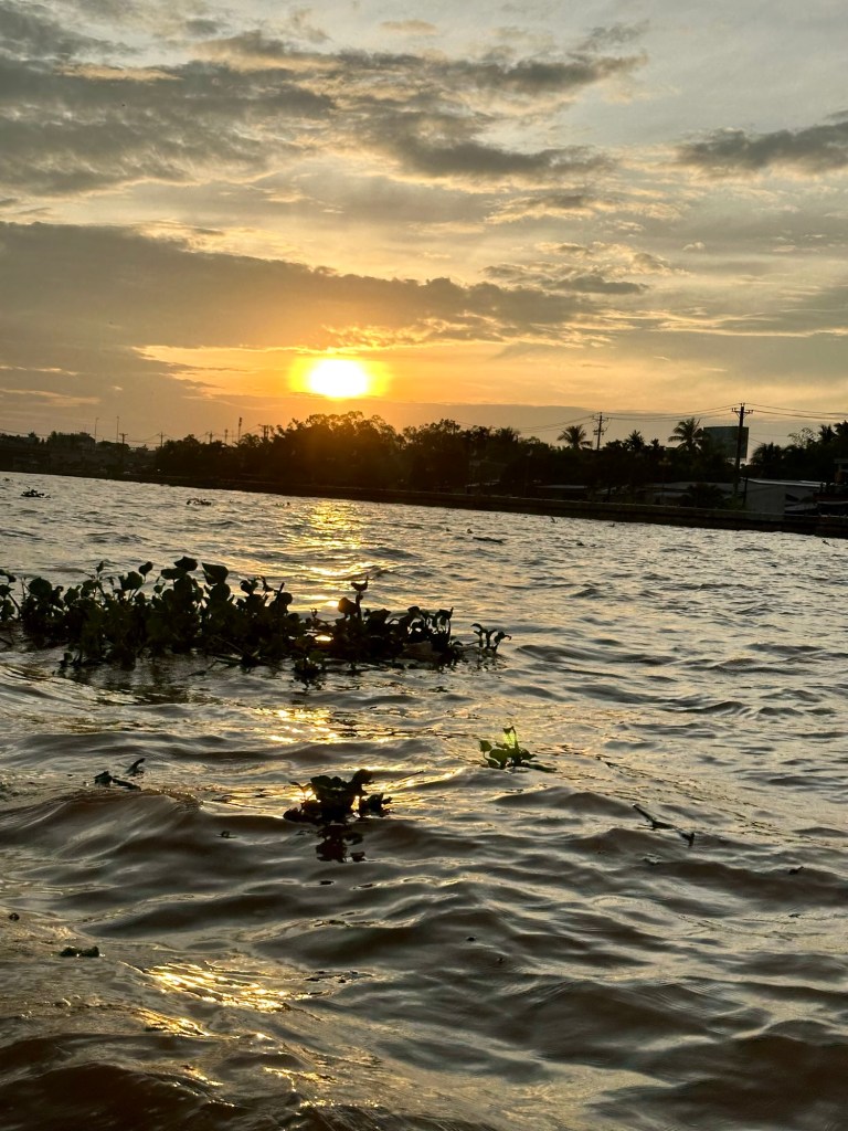 Gestern stand der Besuch der bekannten und viel gepriesenen schwimmenden Märkte auf dem Programm. Bereits um 5.30 Uhr wurden wir von unserer Guide Alina abgeholt. Vor allem Montsi und Claudia freuten sich auf den Ausflug, der bei Sonnenschein stattfand. Mit zig-anderen Touris fuhren wir in der Früh los Richtung Märkte und erlebten einen romantischen Sonnenaufgang.