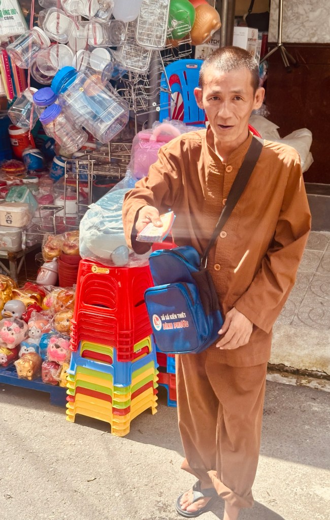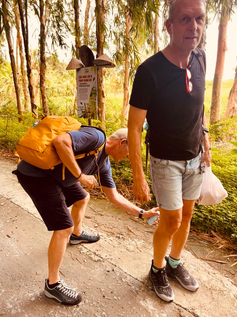 Ngoc trug übrigens ein Langarmshirt, einen Cap und eine lange Hose. Nicht wegen den Mücken, sondern, um nicht Farbe anzunehmen.