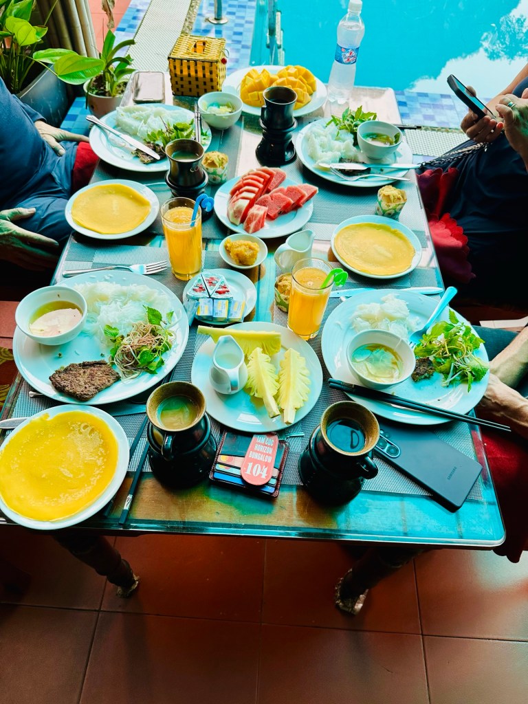 Wir lieben die vietnamesische Küche mit ihrer Bekömmlichkeit, ihrer riesigen Auswahl an Früchten, Kräutern und Gemüse. Wir staunen über die Kreativität beim Einsatz von Pflanzen, deren Blätter, Stengel, Blüten, Wurzeln etc. Wir geniessen❣️