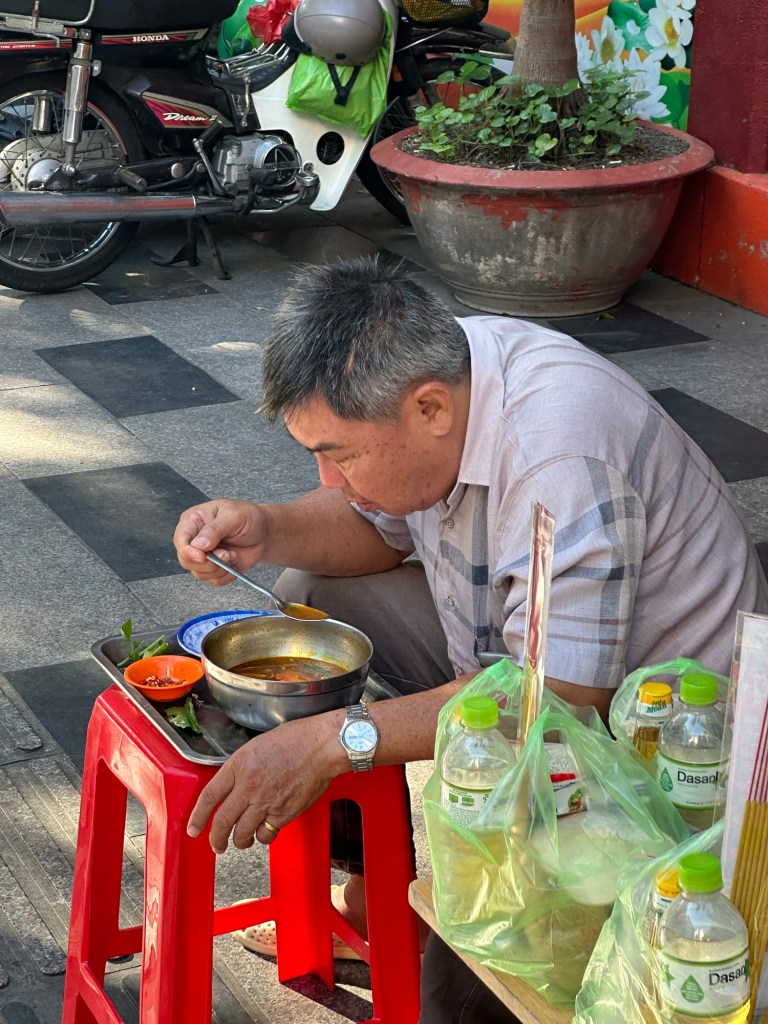 Allerdings war es für Stefan kein leichtes Unterfangen, ein Menü ohne Knoblauch zu finden. Wahrscheinlich hatte er trotz allem Nachfragen ein bisschen davon abbekommen, denn die letzte Nacht in Saigon lag er mehrheitlich wach im Bett 😳.