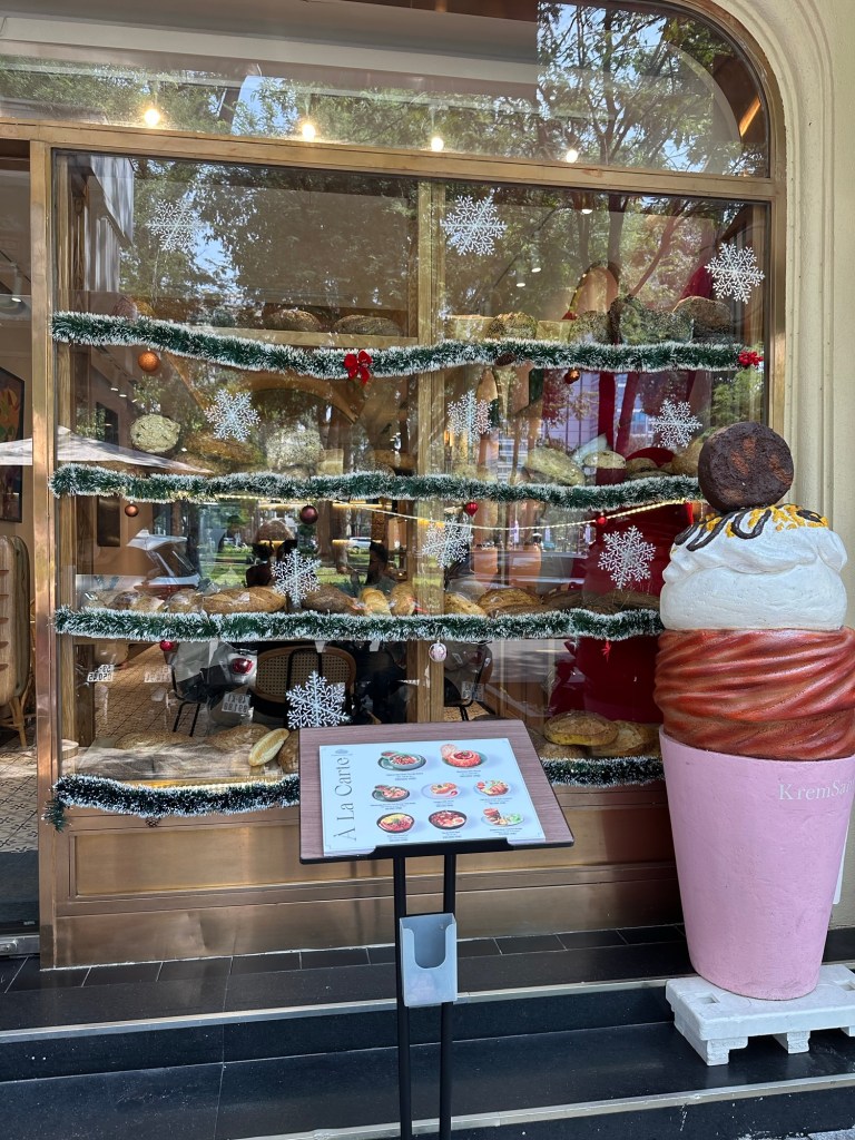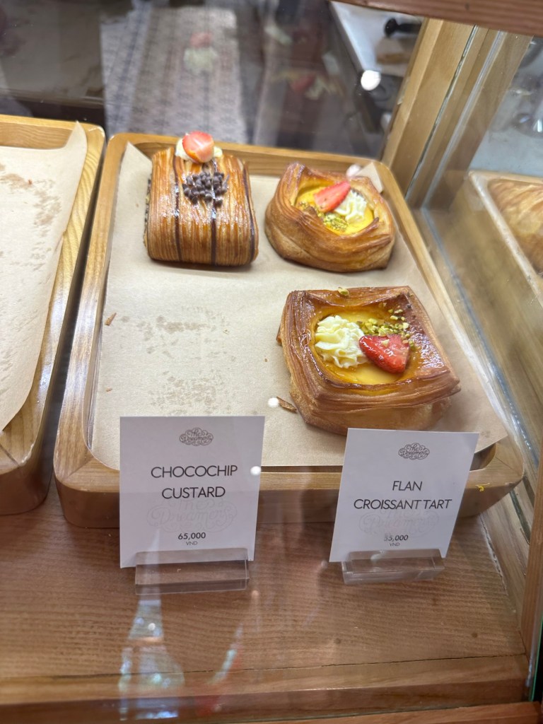 Claudia ging anschliessend alleine weiter zur Bookstreet. Unterwegs kam sie an einer Bäckerei-Patisserie vorbei. Diese verkauft unter anderem Sauerteigbrot und Patisserie, die richtig lecker und schön aussieht. Zudem hatte es in einem Gestell diverse Fachbücher, auch von Herme. Claudia kaufte einen Croissant, ein Chicken-Pate und einen kleinen Schokoladencake, den sie zurück im Hotel, zusammen mit Stefan genoss. Noch nie auf der Vietnamreise hatten die beiden solch ein ausgezeichnetes Croissant und einen köstlichen Cake gegessen!